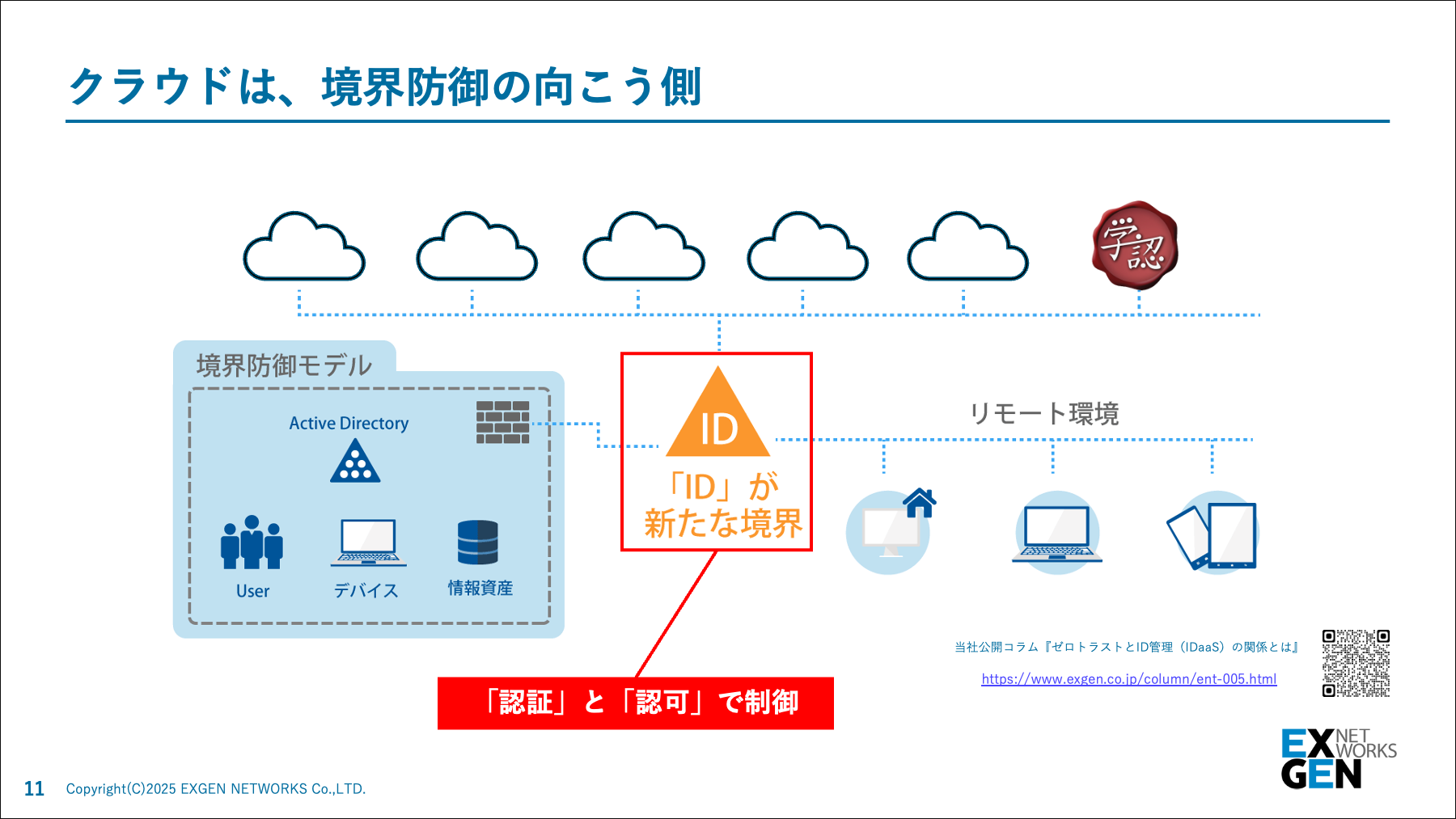 近年、大学でのクラウド化が進み、さまざまなシステムやアプリケーションを学内のネットワークで利用する機会が増えています。その結果、従来の境界防御型のセキュリティ対策だけでは十分な安全性を確保できず、アクセスの都度「認証」と「認可」によって利用可否を判断するゼロトラストを前提とした考え方が求められるようになっています。