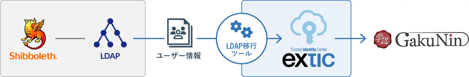 オンプレミスで稼働している学認IdPをExticの学認IdPへ切り替える際に、ご活用いただけます。